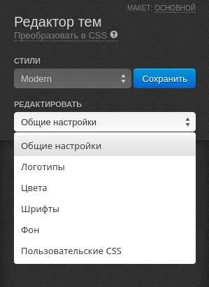 • Пользовательские CSS — использование CSS для продвинутой настройки дизайна.