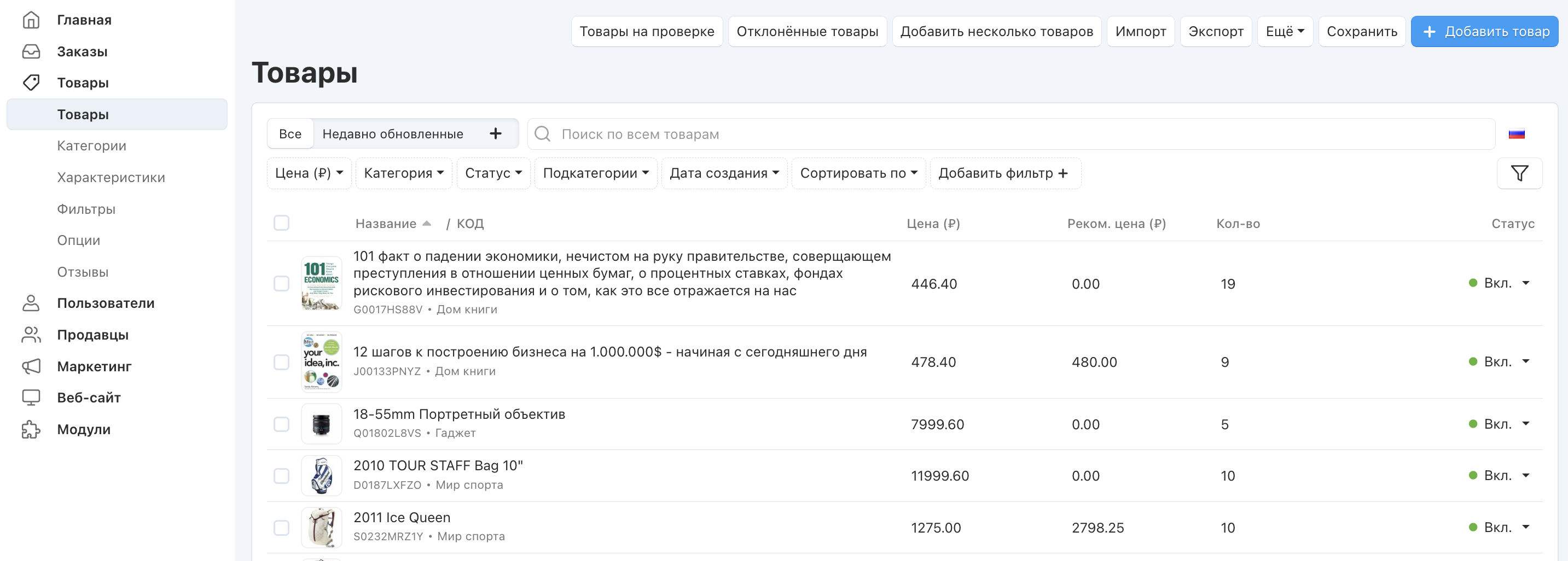 Данный раздел посвящен возможностям платформы по созданию и редактированию товаров и категорий.