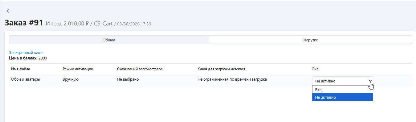 Чтобы покупатель смог скачать этот файл, администратор магазина должен одобрить загрузку на странице редактирования заказа:
