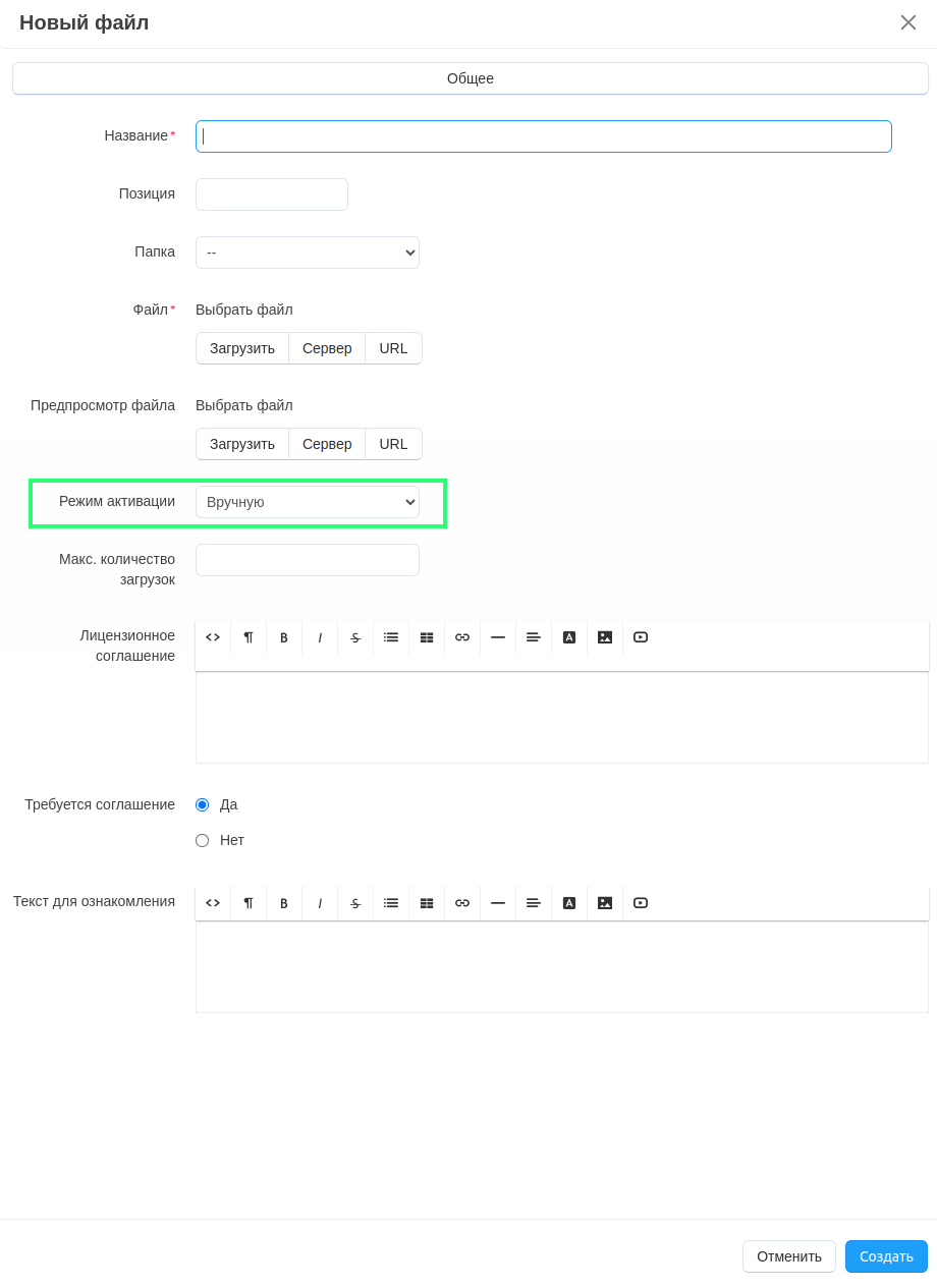 - Позиция — если вы загружаете несколько файлов, используйте это поле, чтобы задать порядок файлов.