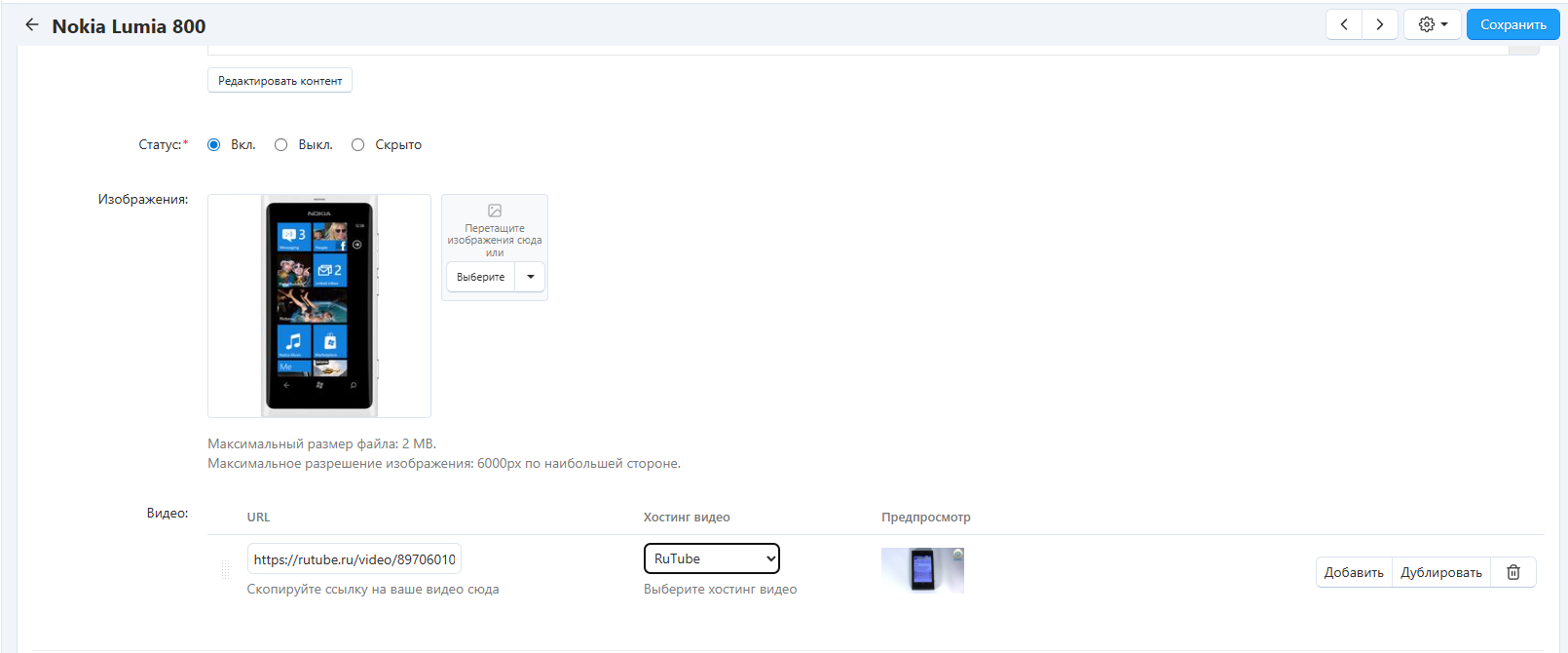 Чтобы добавить видео на страницу товара, сохраните изменения.