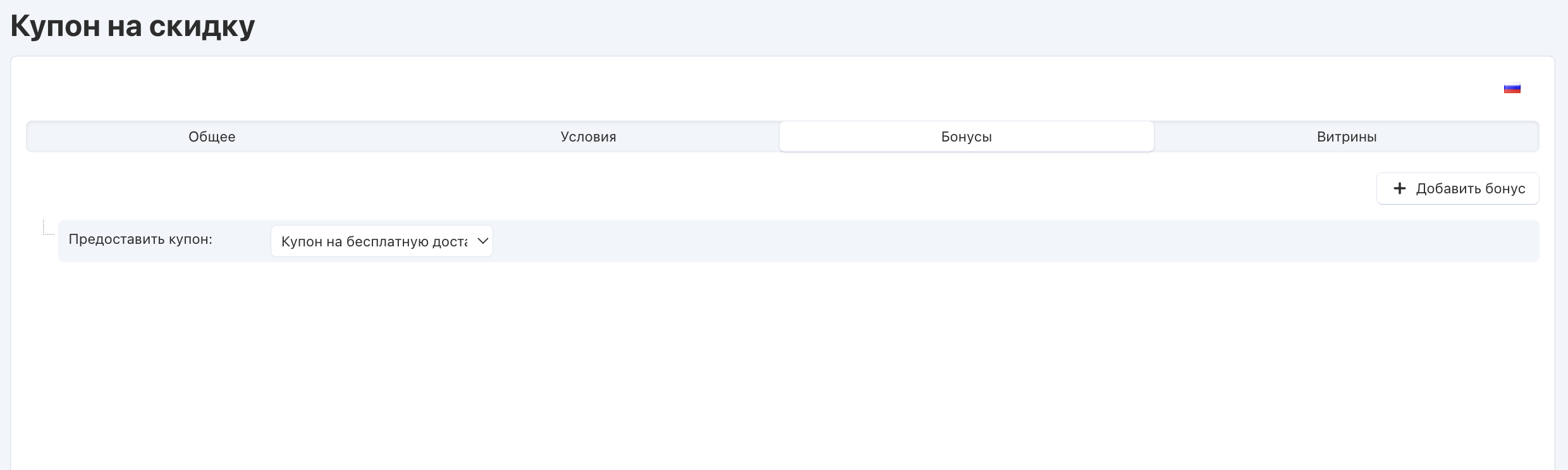 Перейдите на вкладку Бонусы и нажмите кнопку Добавить бонус.