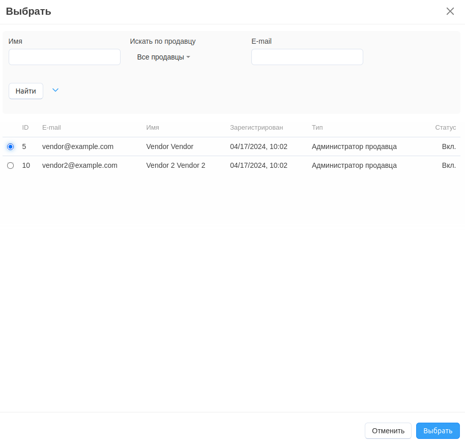 Откроется всплывающее окно, где вы сможете выбрать администратора. Если администраторов слишком много, воспользуйтесь поиском.
