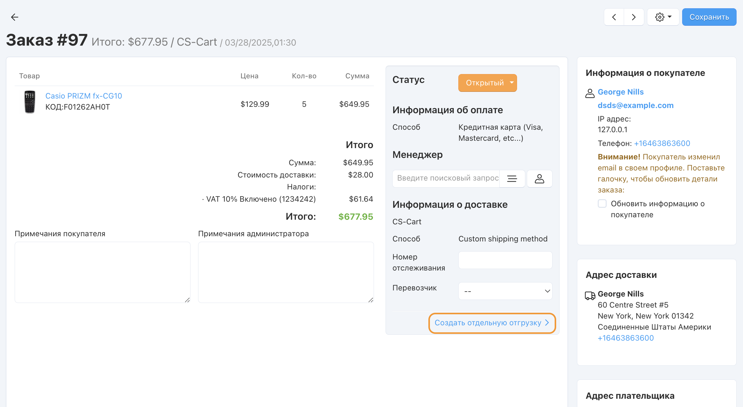 Если вы планируете отправлять товары из этого заказы разными перевозчиками или просто разными партиями: