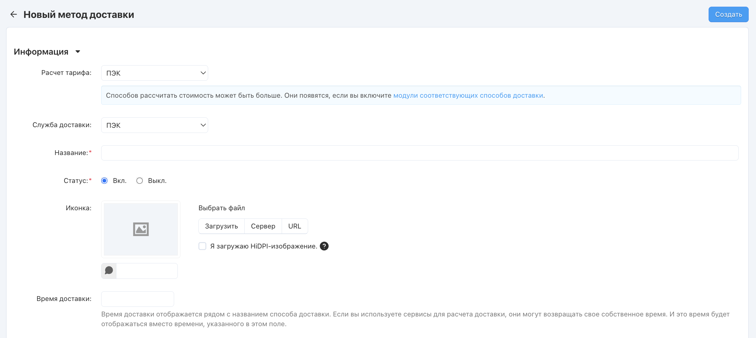 Выполните настройку нового способа доставки во вкладке “Настроить”.